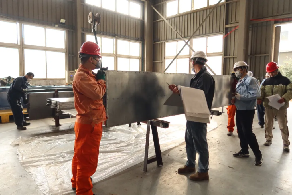 今日,三菱重工环境解决方案株式会社携相马火力发电株式会社代表团莅临我司,展开日本相马电厂固定式和移动极板电除尘项目终端客户中期检查,重点关注产品的预拼装情况。